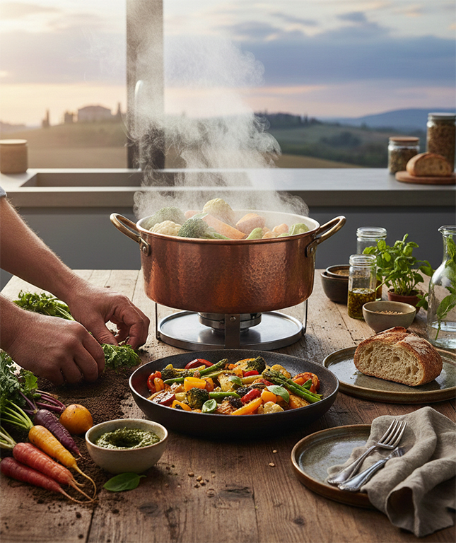 La cottura al vapore esalta la qualità della verdura, rispettandone struttura, colore e proprietà.